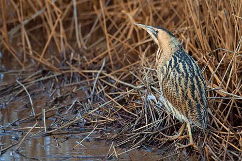 I rørsumpene rundt om i fredningen, bl.a. ved Løje Sø, kan rørdrum og rørhøg opleves.