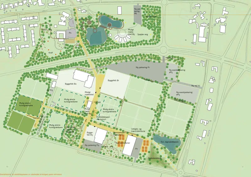 Udviklingsplanen skal sikre plads til både eksisterende og nye aktiviteter, bl.a. den kommende multihal. Som led i planen skabes en bedre sammenhæng på tværs i området med bedre stiforbindelser, mødesteder og rekreative områder, så man kan mødes på tværs af aktiviteter og områder. Endelig bliver der flere adgangsveje til området og nye parkeringsmuligheder.