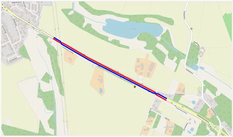 Første weekend, d. 25. - 18. juli, vil al trafikken blive rykket over i den røde side.