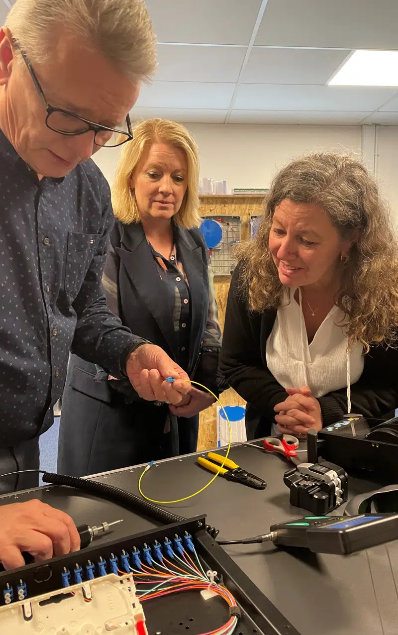 Direktør Henrik Hedegaard viser hvordan man renser enden på en fiber.