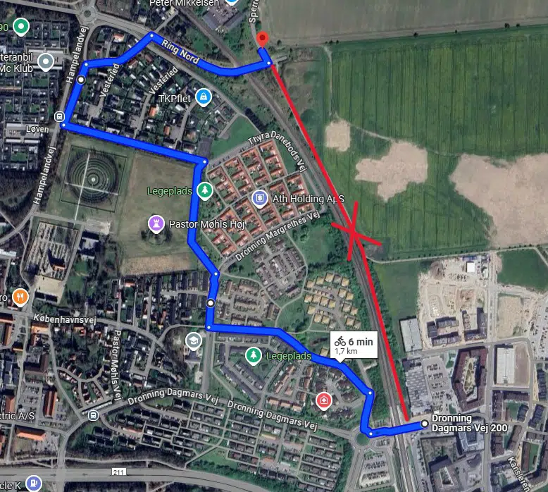 I forbindelse med anlægsarbejdet i Landskabsbyen bliver supercykelstien, der løber langs togskinnerne ved Ring Nord i Ølstykke, afspærret i to perioder fra midten af april.